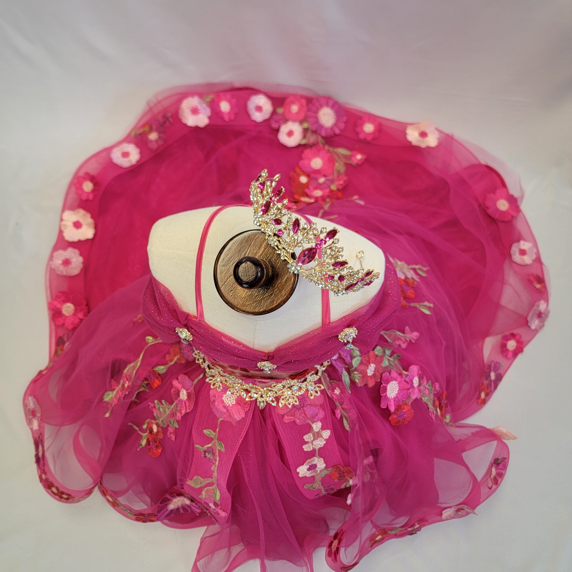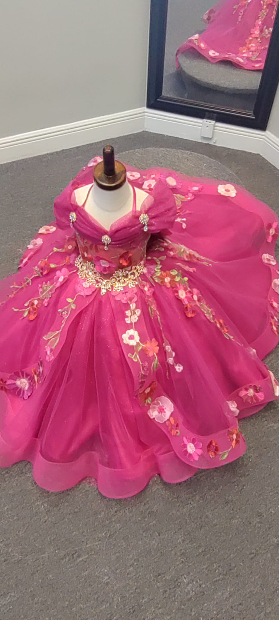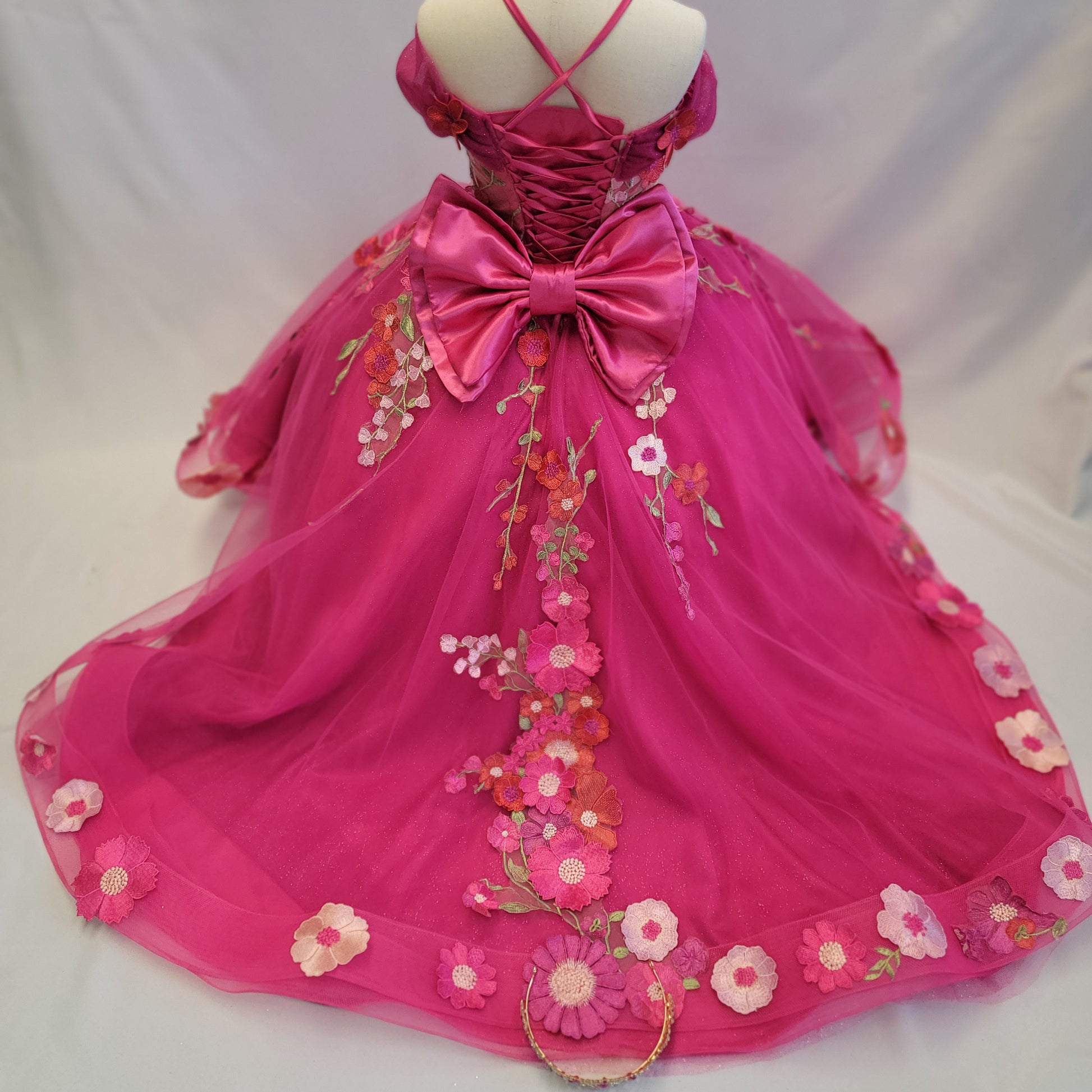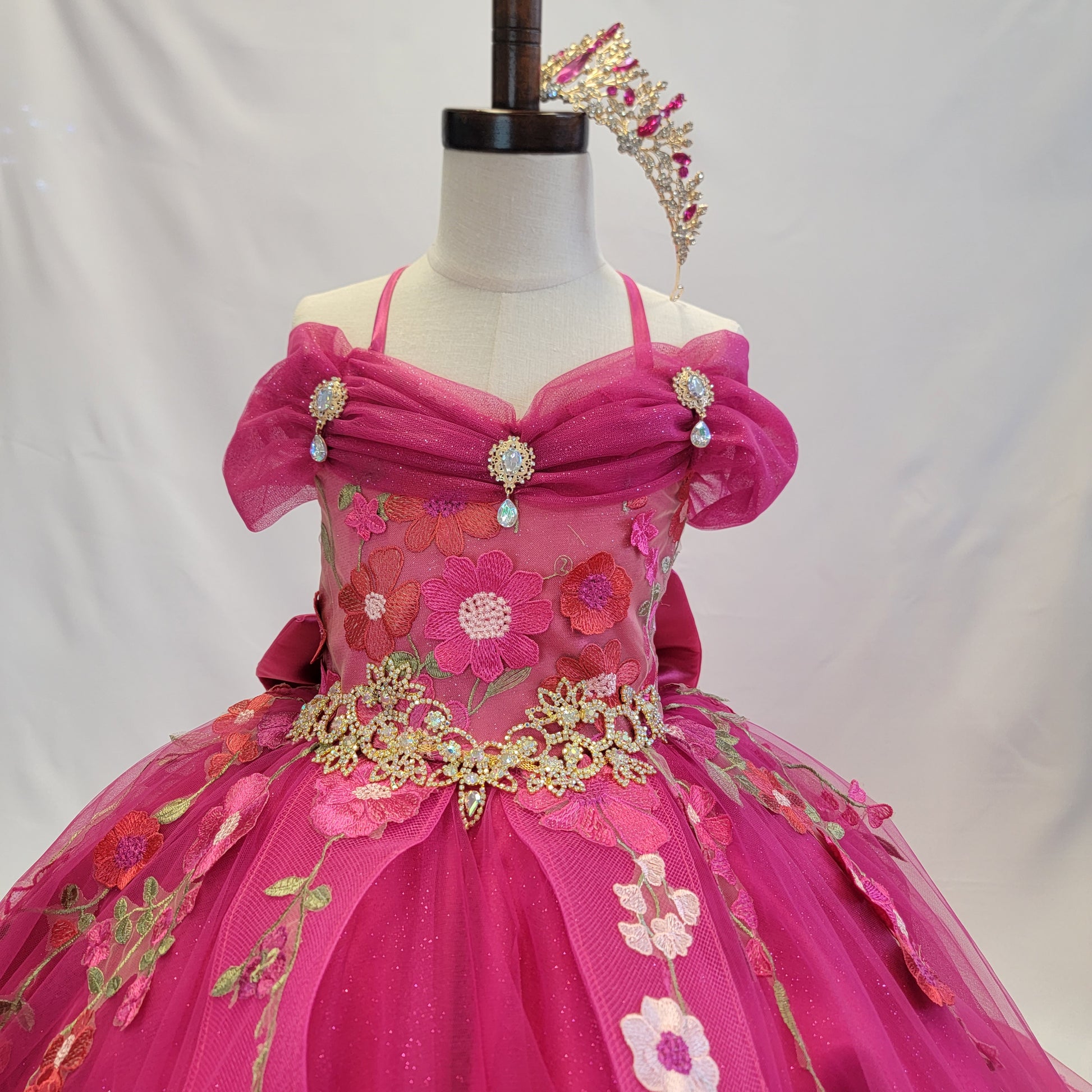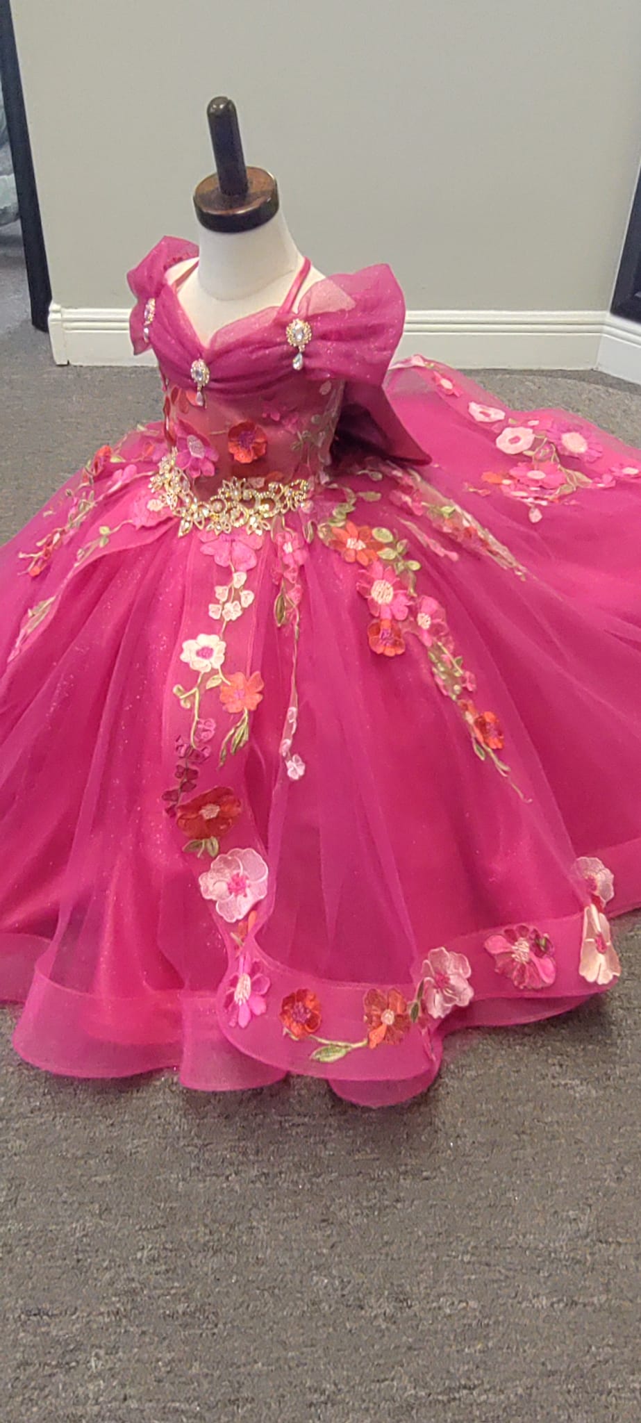 vestido rosado con detalles de flores y lazo grande,hecho a mano para oresentación de 3 años o cualquier ocación